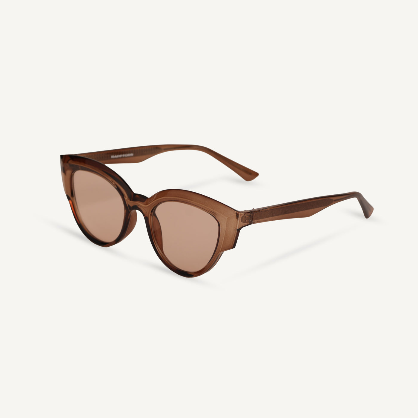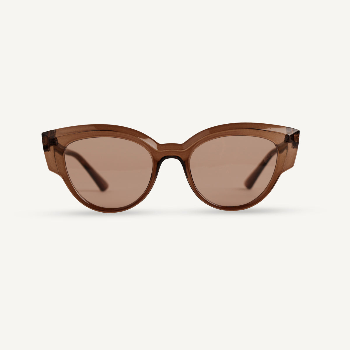 Amara Glint features a light tea brown frame paired with brown lenses for a graceful and wearable sunglasses design. Crafted for unisex comfort, these sunglasses deliver lightweight durability and 400% UV protection for daily outdoor use.