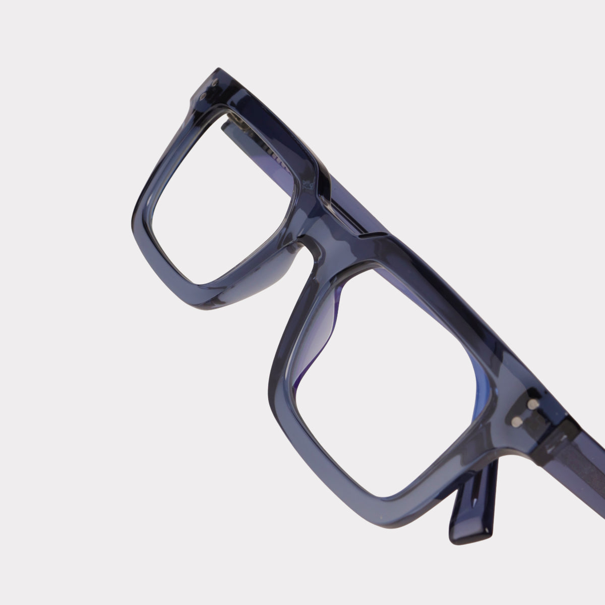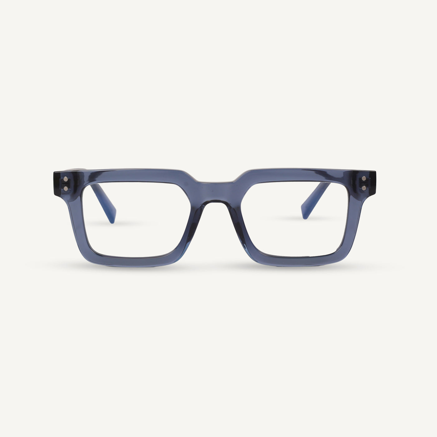 Riven Foss features Bluecut lenses paired with a transparent blue frame, creating a fresh and modern eyewear profile. Designed to reduce screen fatigue and maintain visual comfort, this unisex frame balances function with refined aesthetics for everyday wear.